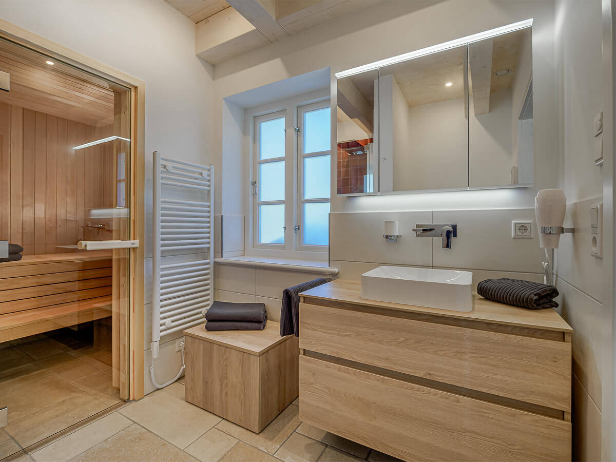 • Badezimmer mit Dusche und Sauna