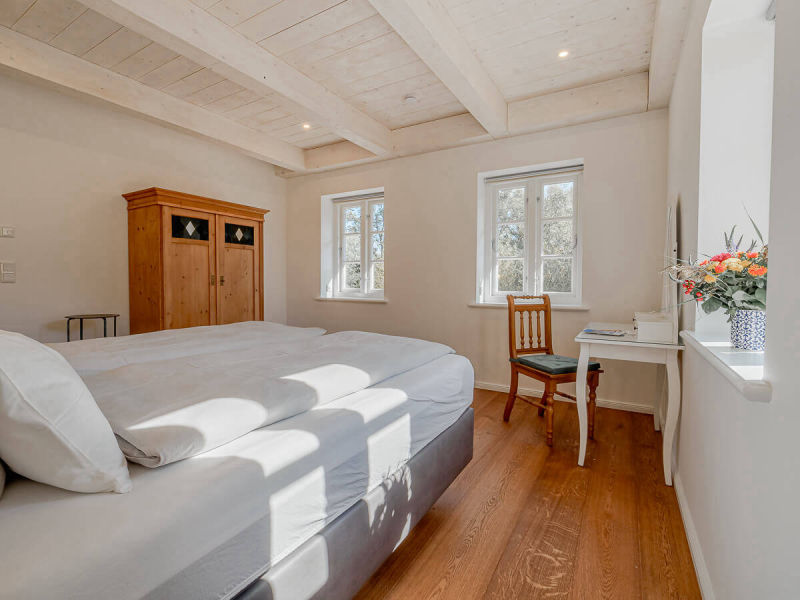 Die beiden Schlafzimmer im Obergeschoss sind mit Bad en Suite, ein Schlafzimmer liegt seniorengerecht im Erdgeschoss mit dem Bad direkt gegenüber. Luxuriöse Boxspringbetten sorgen für guten Schlaf.